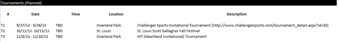 TOURNAMENT GAMES - FALL SEASON (2013)