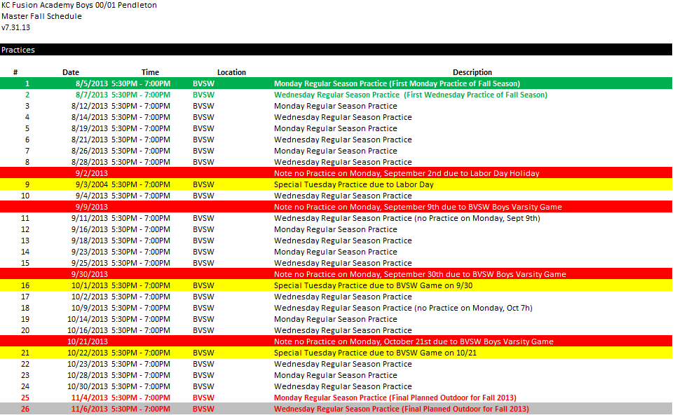 2013/ 2014 FALL PRACTICE SCHEDULE